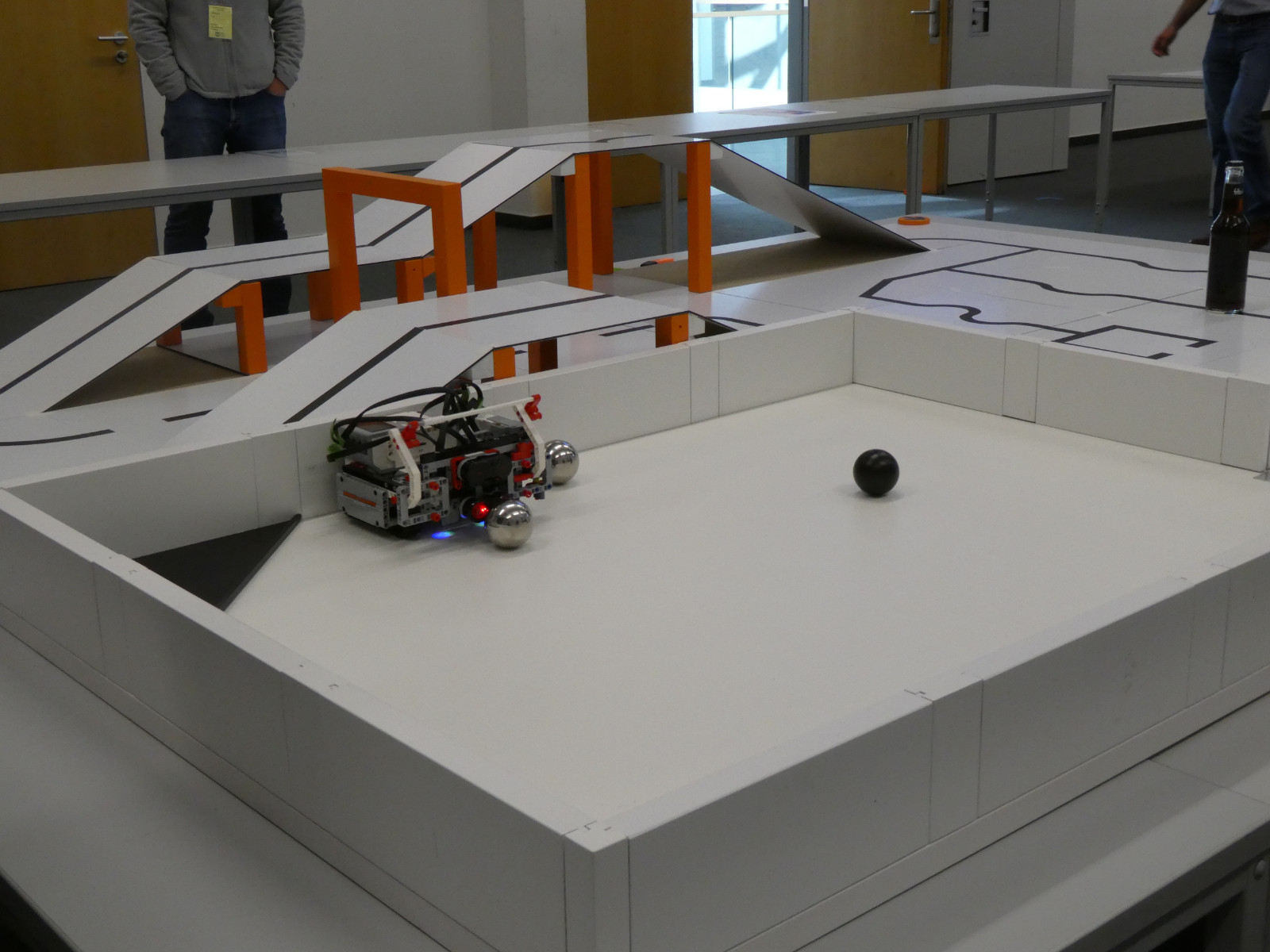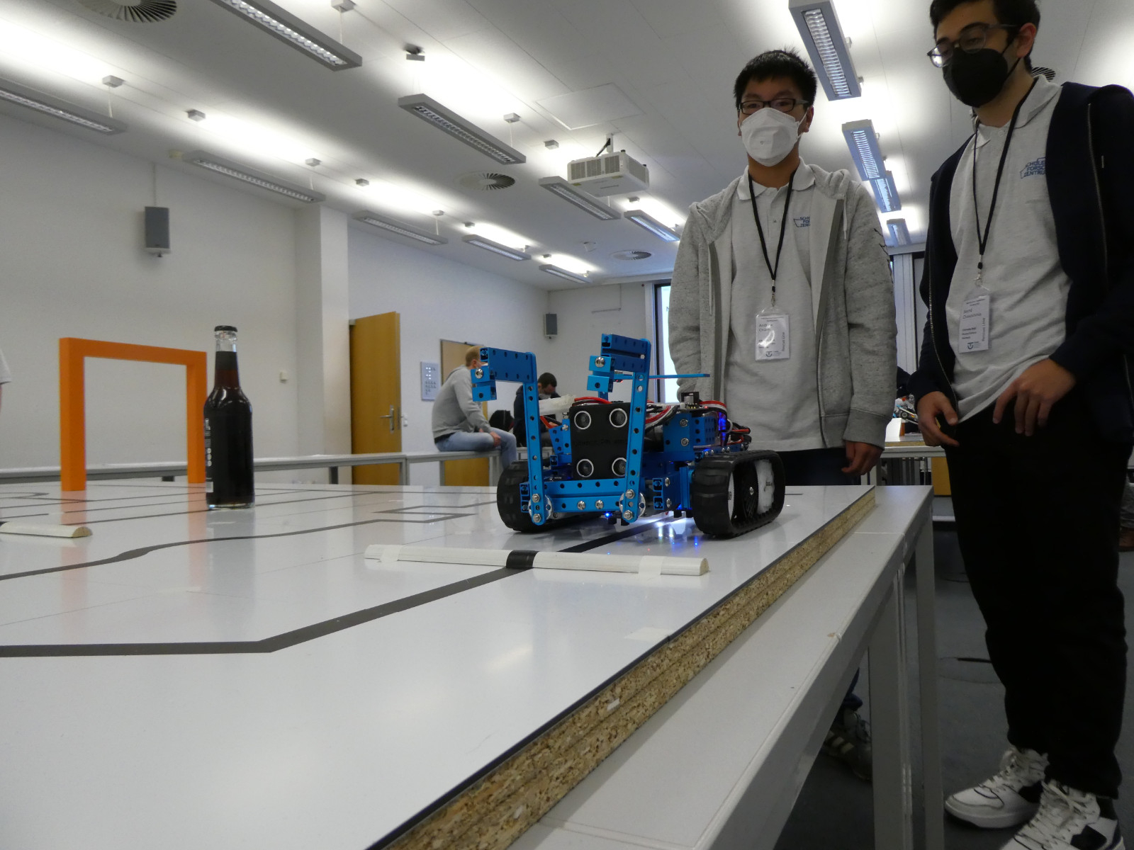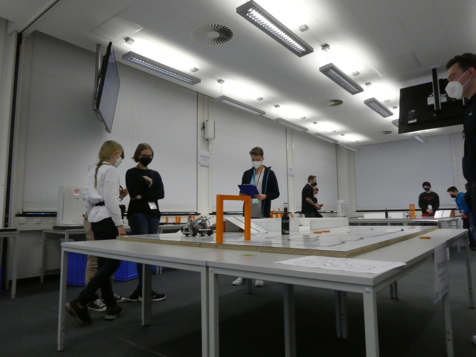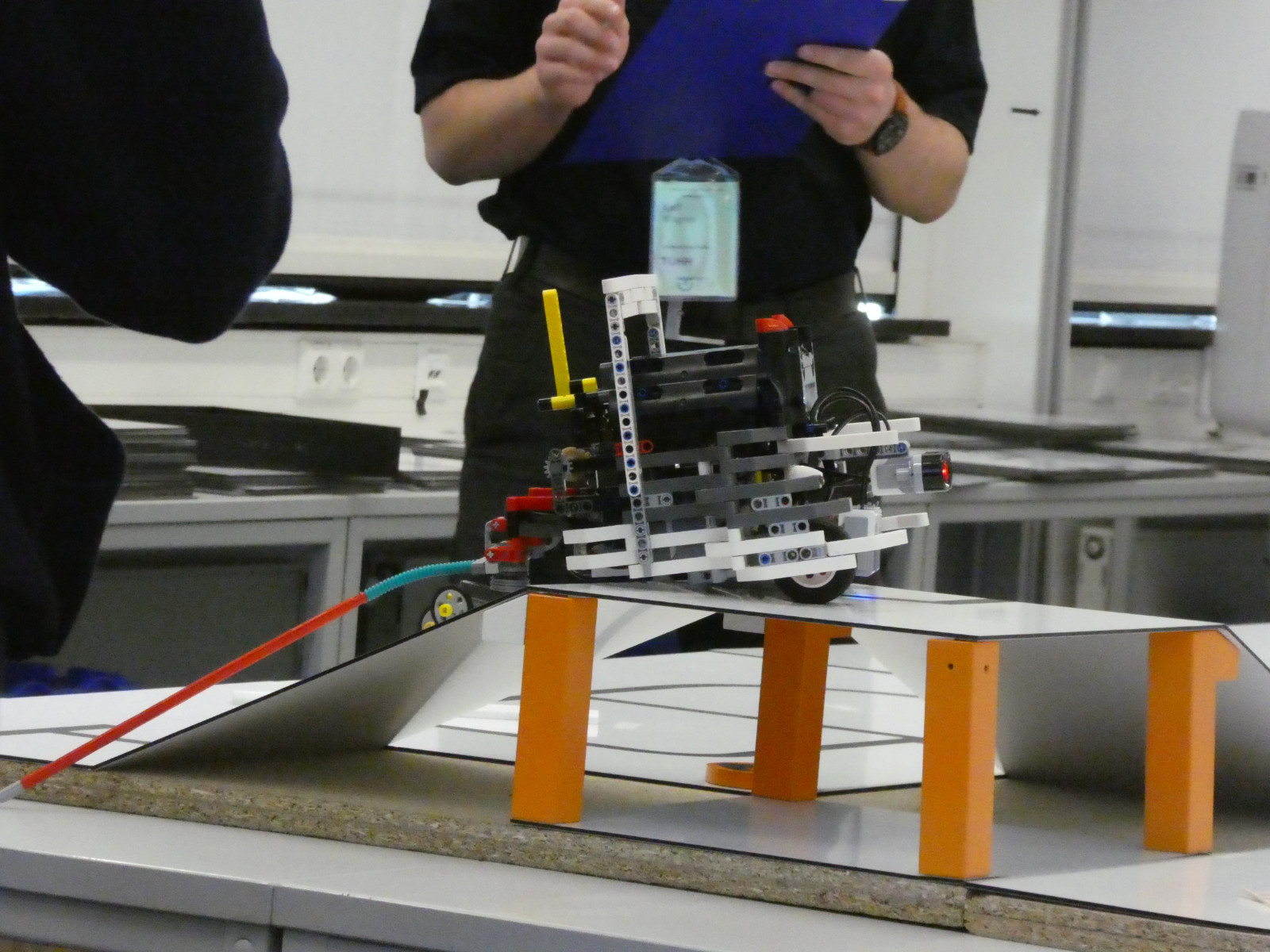 Bei dem diesjährigen Event in Hamburg wurden zwei verschiedene Ligen als Qualifikationsmöglichkeit angeboten. Am Samstag hatten die 14-19-jährigen Schülerinnen und Schüler die Möglichkeit, die Fähigkeit ihrer Roboter in der Disziplin Rescue Line vorzustellen. Hierbei bewältigen die Roboter fünf verschiedene unbekannte Parcours, die die Aufgaben echter Such – und Rettungsroboter simulieren. So müssen unter anderem verschiedene Hindernisse bewältigt werden, Kreuzungen und Rampen fehlerfrei durchfahren werden und am Ende verschiedenfarbige Kugeln, die die zu rettenden Opfer darstellen, zielgerichtet evakuiert und geborgen werden. Insgesamt werden fünf Läufe absolviert, von denen später die vier Besten in die abschließende Wertung einfließen.