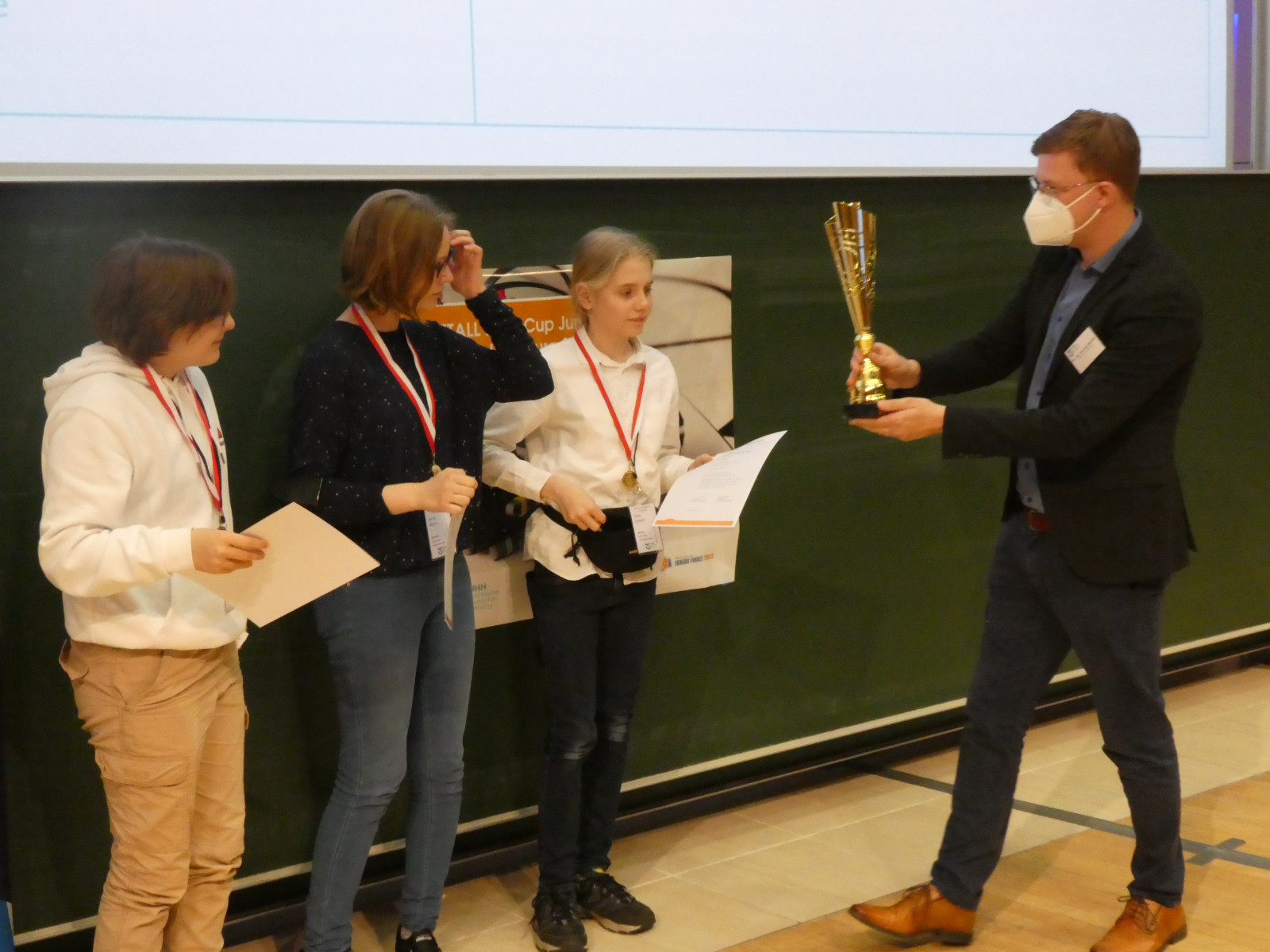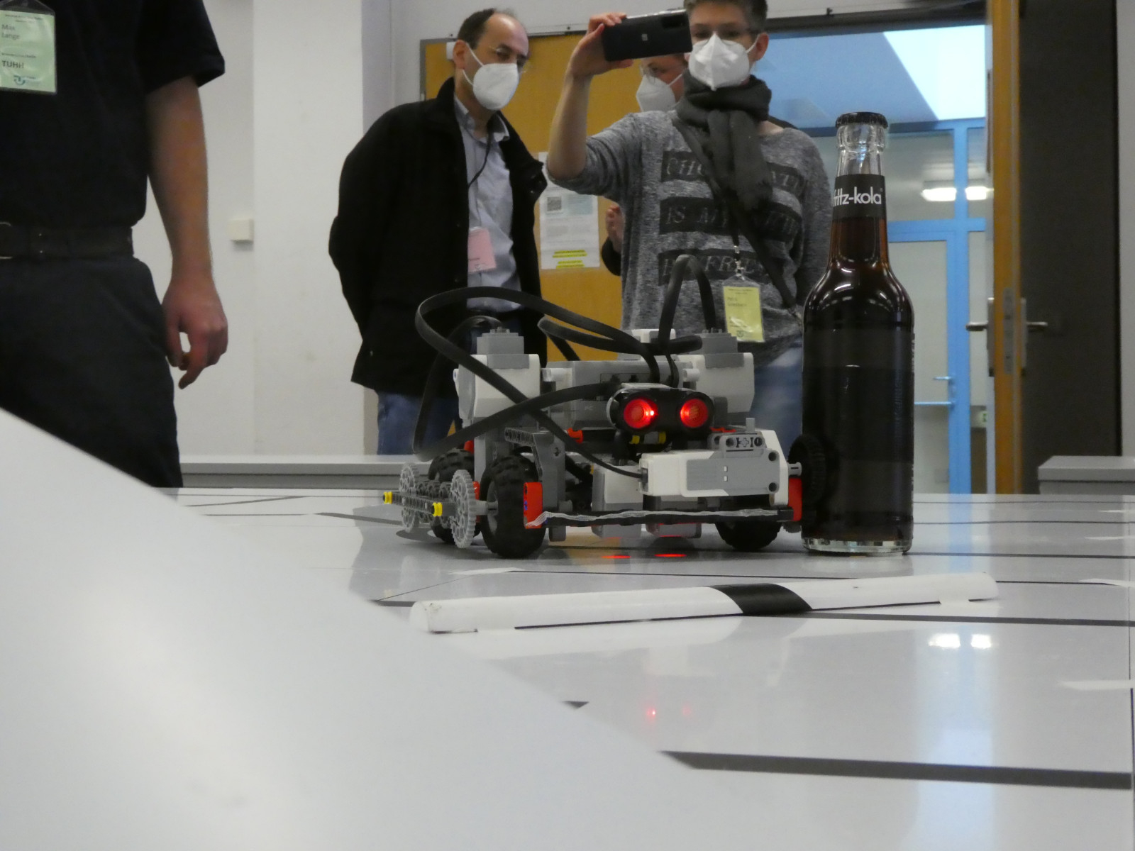 Am Sonntag hatten dann die jüngeren Schülerinnen und Schüler (10-14 Jahre) mit ihren Robotern ihren großen Auftritt. In der Disziplin Rescue Line Entry, die sich speziell an die jüngeren Teilnehmerinnen und Teilnehmer richtet, gibt es ein paar Vereinfachungen. Nichts desto trotz sind die Herausforderung groß, zumal die Vorbereitung der Wettbewerbe zumeist in Rahmen schulischer AGs erfolgt, die pandemiebedingt häufig ausfallen mussten. Eine herausragende Leistung konnte das Team atheBots vom Gymnasium Athenaeum Stade erreichen. Mit über 700 Punkten im ersten Lauf, erreicht das Team damit mehr Punkte, als einige Teams nach allen 5 Läufen für sich verzeichnen konnten.
