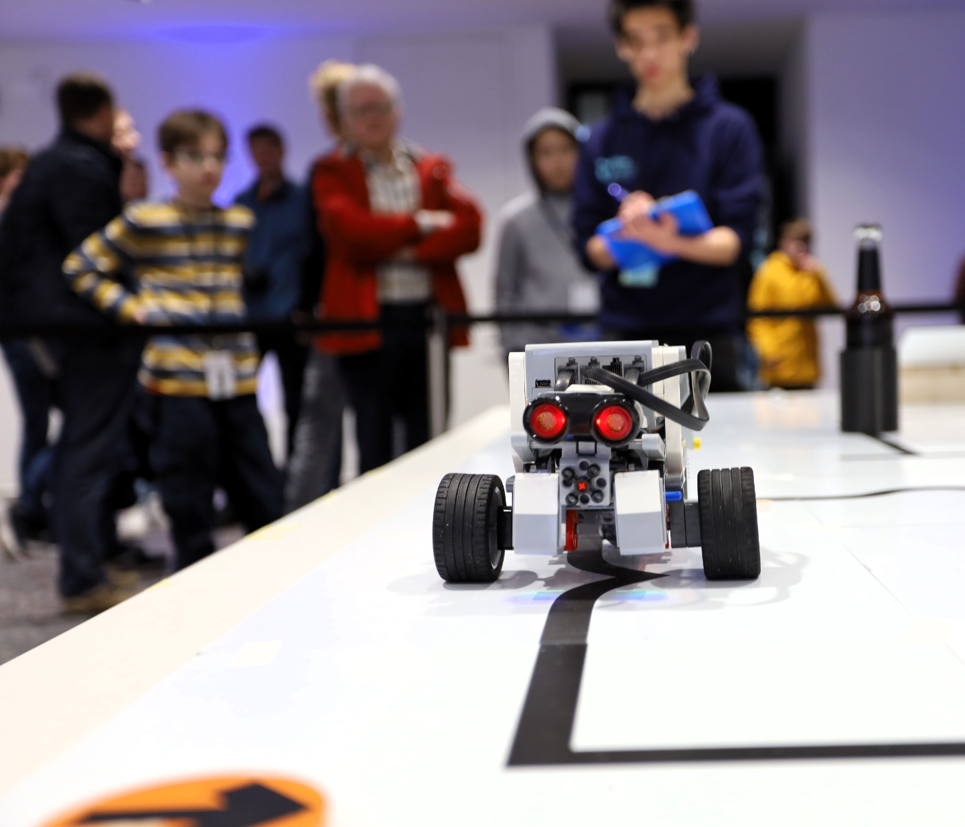 In der Rescue-Line Entry-Liga gingen die jüngsten Teilnehmer*innen im Alter von 10-14 Jahren an den Start. Die Aufgaben, die die Roboter erledigen musste, ähneln bereits denen, die in der Disziplin Rescue Line erfüllt werden müssen. Vereinfachte Regularien erleichtern hier aber den Einstieg in die Welt der Konstruktion und des Programmierens.