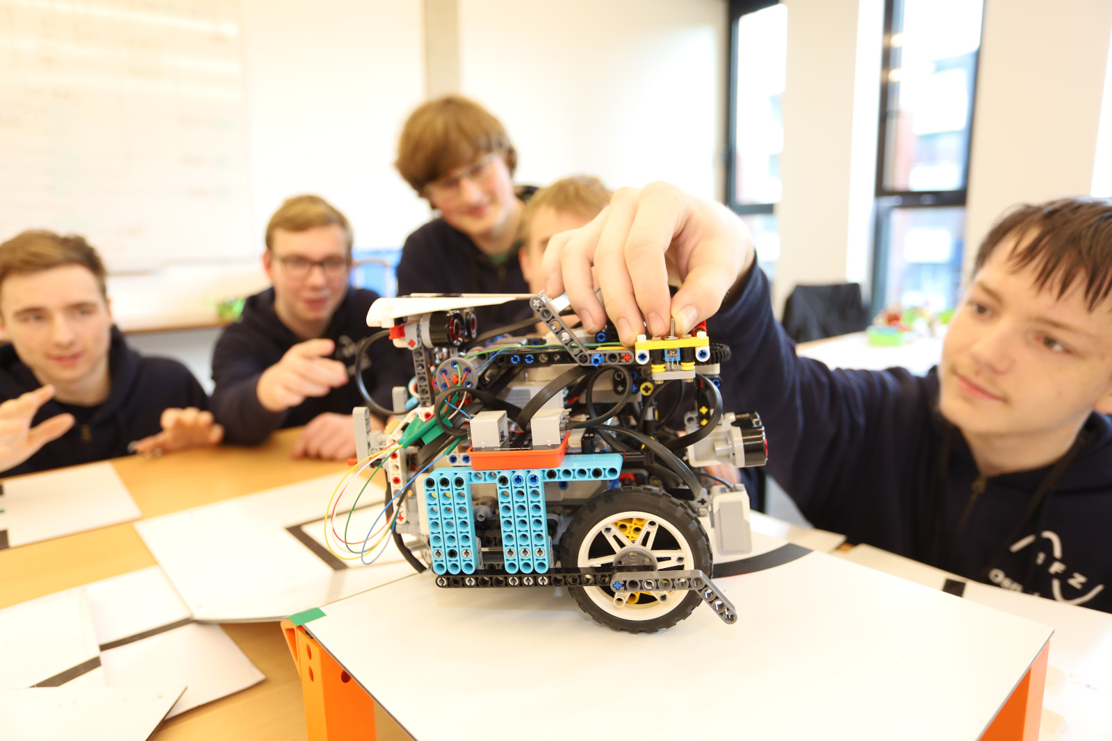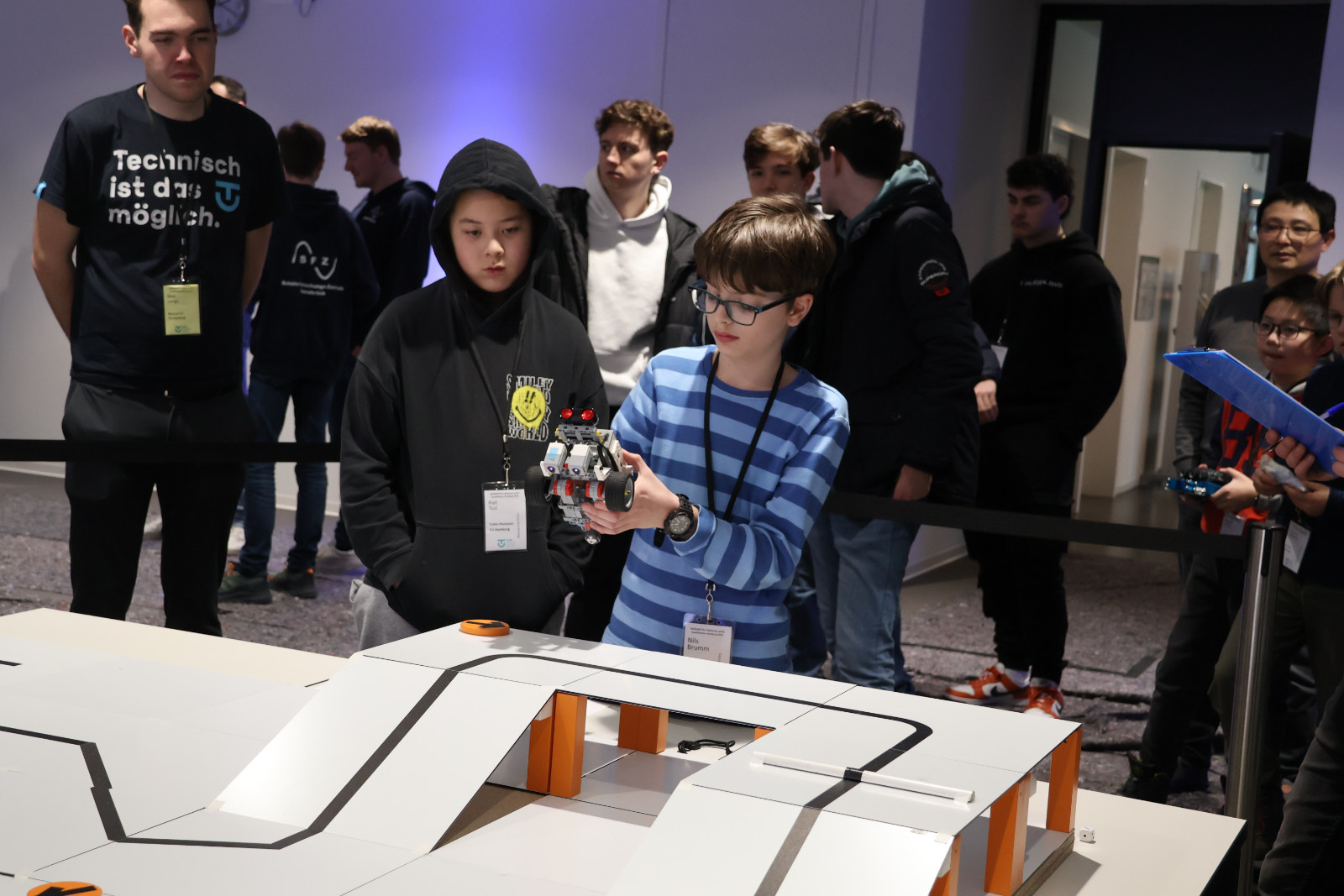 Bei den älteren Teilnehmenden in der Disziplin Rescue Line waren es gleich fünf Teams, die sich für die Teilnahme an der Deutschen Meisterschaft qualifiziert haben. Dabei erreichte das Team BitFlip den ersten Platz mit einer Rekordpunktzahl von über 2000 Punkten und wird sicher auch in Kassel erfolgreich sein. Aber auch die anderen Teams sind nicht zu unterschätzen: das Team Robi L.A. vom Ökumenischen Gymnasium zu Bremen und die Teams SFZ-23.02er, SFZ-RoboMasters und SFZ-Nameless vom Schüler-Forschungs-Zentrum Osnabrück konnten sich ebenfalls mit guten Ergebnissen qualifizieren. Bei den kreativen Teams aus der Disziplin OnStage konnten sich alle sechs Teams über eine Weiterqualifikation freuen. Sieger des OnStage-Wettbewerbs am Wochenende war das Team atheBlues vom Gymnasium Athenaeum Stade.