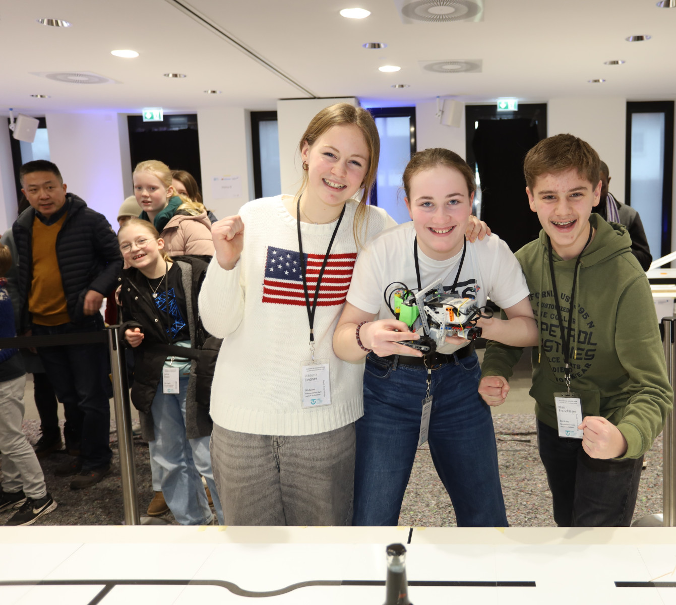 Am Ende gab es strahlende Sieger. Das begehrte Ticket für die RoboCup German Open konnten in der Rescue Line Entry-Liga drei Teams lösen: athe3 und athe4 - beide vom Gymnasium Athenaeum Stade - und das Team ÖG-Brains vom Ökumenischen Gymnasium zu Bremen fahren gemeinsam nach Kassel.
