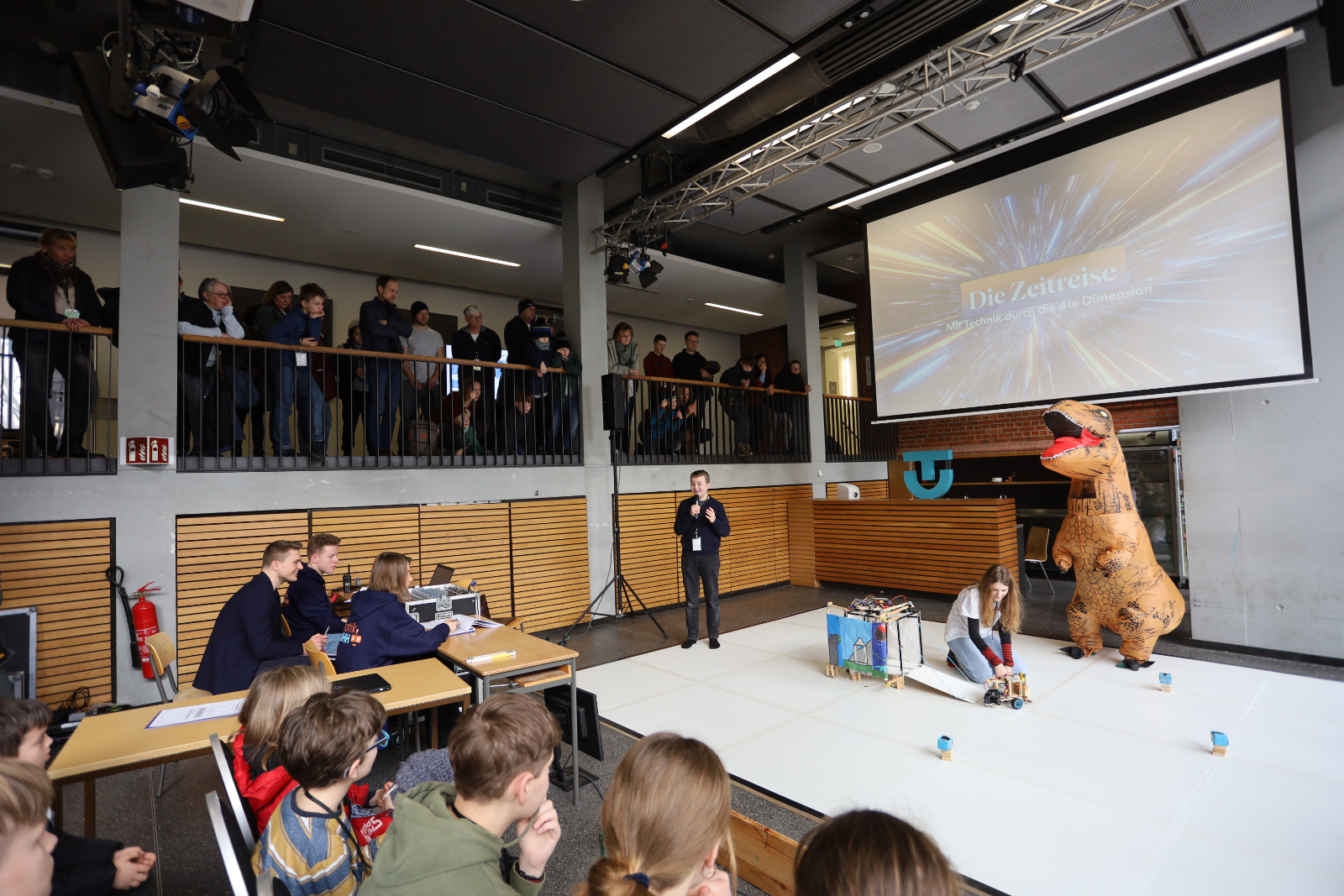 Auch das Rahmenprogramm des weltweit führenden Wettbewerbs für intelligente Roboter konnte sich sehen lassen. So konnten die Zuschauer am Sonntag eine Vorführung des Instituts für Digitales und Autonomes Bauen bestaunen und interessante Einblicke in die roboterbasierten Wartungs- und Prüfsysteme der Zukunft erhalten. Der Roboter I-Dog, der sich selbstständig im Raum bewegte, soll künftig helfen, Brücken und andere Bauwerke zu untersuchen.