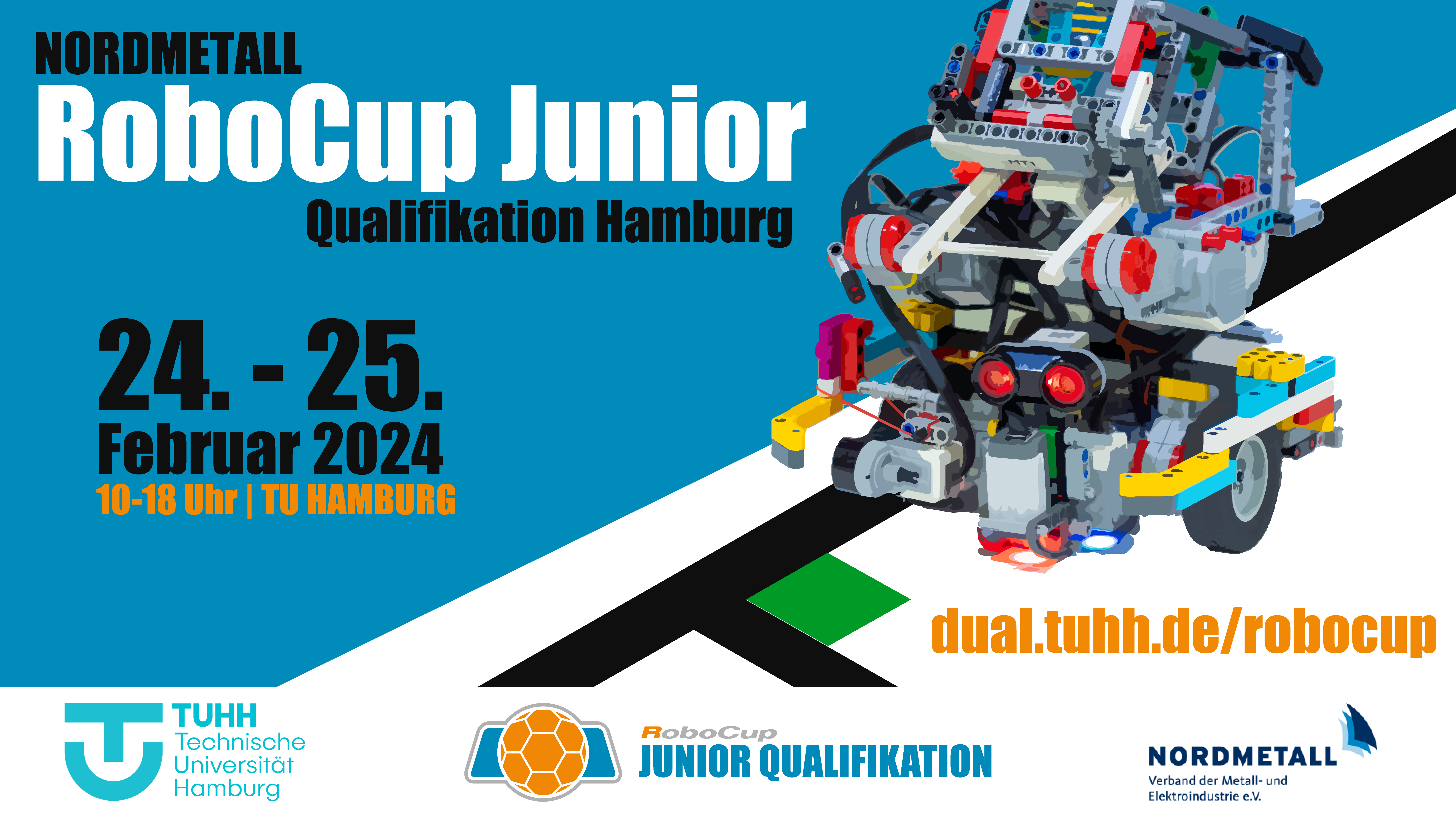 Der RoboCup Junior ist die Nachwuchsdisziplin des RoboCup-Wettbewerbs, dem weltweit führenden und größten Wettbewerb für intelligente Roboter. Bereits seit 2018 findet an der TUHH eines von deutschlandweit 8 Qualifikationsturnieren für die Junior-Liga statt. Initiiert durch NORDMETALL und die TU Hamburg ist das Turnier neben viel Spaß und Spannung für die Teilnehmenden ein wichtiger Baustein der MINT Förderung.