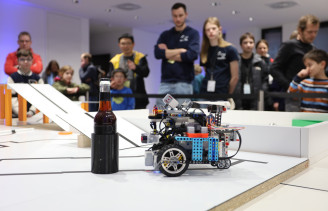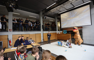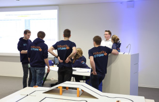In der dritten Disziplin OnStage wurde es bunt und kreativ. Die teilnehmenden Teams erzählten mit ihren Robotern unterschiedliche, selbstentwickelte Storys. Bewertet wurden hier neben der Performance auch die Erklärung der technischen Komponenten und das im Vorfeld eingereichte Material, in der die Teams über die Entwicklung der Idee und die eingesetzten Roboter informierten.