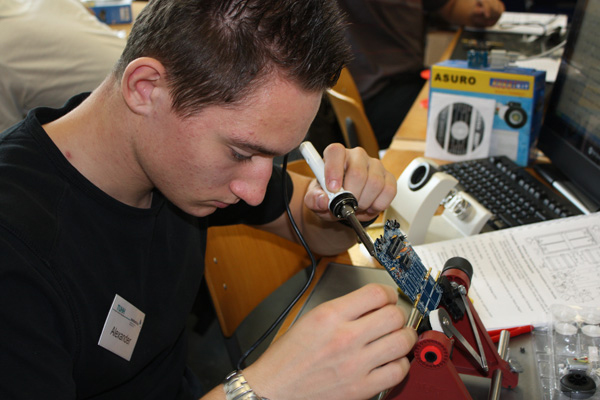 Neben der Programmierung des Roboters stand der Zusammenbau des ASURO-Robotikbausatzes im Mittelpunkt. Ein Teilnehmer schaffte es den ASURO fehlerfrei in Bestzeit von weniger als 3 Stunden zu löten. Nach dem Zusammenlöten des Bausatzes konnte der Programmierung begonnen werden. Die Aufgabe bestand darin, einen Parcours möglichst schnell und zuverlässig zu durchqueren.