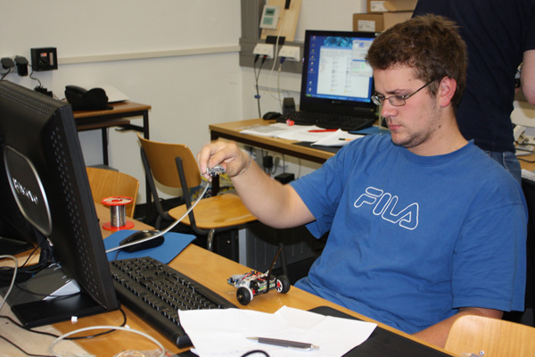 Ausgehend von den Fragen „Welchen Roboter möchte ich zusammenbauen: LEGO oder ASURO?“ und „In welcher Programmiersprache möchte ich den Roboter programmieren: Interactive C oder Java?“ sowie der vorhandenen Programmierkenntnisse konnten die Schülerinnen und Schüler zwischen drei verschiedenen Modulen wählen, deren gemeinsames Ziel darin bestand, einen Linien-Parcours zu durchfahren.