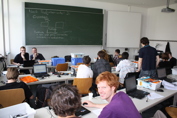 Mit frischer Energie aus den Sommerferien starteten 27 Schülerinnen und Schüler gleich zu Beginn des neuen Schuljahres mit einem Robotik-Camp an der Technischen Universität Hamburg-Harburg (TUHH). Zum ersten Mal kamen die Schülerinnen und Schüler am 11. und 12. September 2010 nicht nur aus der Metropolregion Hamburg, sondern aus dem gesamten Bundesgebiet. Zusammen mit Teilnehmerinnen und Teilnehmern aus Lübeck, Münster, Celle, Berlin, Recklinghausen oder Trier konstruierten und programmierten die Zehn- bis Dreizehnklässler ein Wochenende lang Roboter.