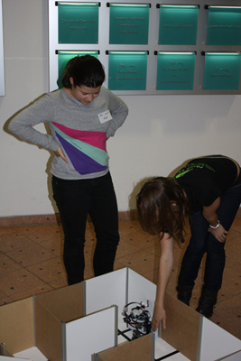 In diesem Kurs konnten vorhandene Programmierkenntnisse vertieft werden. Anhand der Sprache „Java“ wurden Unterschiede zwischen imperativen und objektorientierten Programmiersprachen aufgezeigt. Zusätzlich kamen Ultraschallsensoren zum Einsatz, mit Hilfe derer der Roboter durch ein 3D-Labyrinth gesteuert wurde.