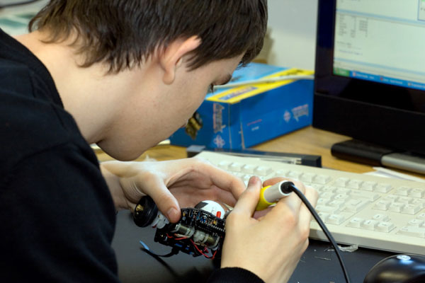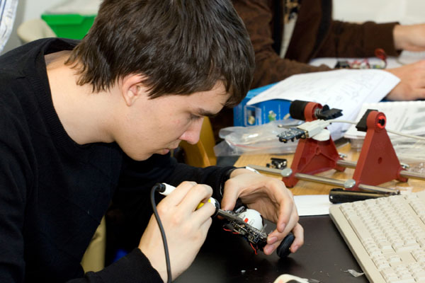 Neben der Programmierung des Roboters stand der Zusammenbau des ASURO-Robotikbausatzes im Mittelpunkt. Ein Teilnehmer schaffte es den ASURO fehlerfrei in Bestzeit von weniger als 3 Stunden zu löten. Nach dem Zusammenlöten des Bausatzes konnte der Programmierung begonnen werden. Die Aufgabe bestand darin, einen Parcours möglichst schnell und zuverlässig zu durchqueren.