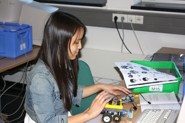 Außerdem wurden sechs Tutoren der Koordinierungsstelle im Rahmen des Camps weitergebildet. Im Vordergrund dieses Intensivkurses stand die Konstruktion und Programmierung eines Roboters. Die Teilnehmer konnten zwischen drei verschiedenen Modulen wählen: