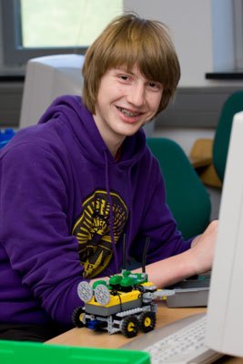 Dieses Modul richtete sich an Teilnehmerinnen und Teilnehmern ohne Vorkenntnisse. Vermittelt wurden wichtige Strukturen der Informatik, mit denen der selbstgebaute Roboter schon nach kurzer Einarbeitung den Weg durch einen Linien-Parcours finden konnte. Nicht nur die richtige Software sondern auch die Konstruktion des Roboters spielte eine große Rolle. Die Programmierung wurde in der an die Hochsprache „C“ angelehnten Version „Interactive C“ durchgeführt.