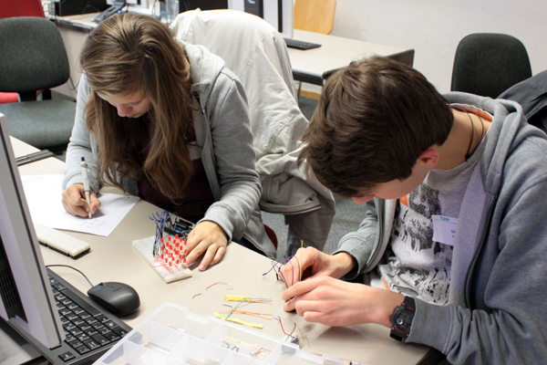 In diesem Kurs stand der Entwurf von elektronischen Schaltungen und die Ansteuerung dieser Schaltungen über das Arduino Board im Vordergrung. Mit einfachen Steckverbindungen werden Schaltungen zum Betreiben von Motoren oder LEDs aufgebaut. Elementare Schaltkreise wurden eingeführt und weiterentwickelt. Über den programmierbaren Mikrocontroller des Arduino Boards werden schließlich die selbst entworfenen Schaltungen gesteuert. Die Programmierung wird in der Hochsprache "C" durchgeführt.